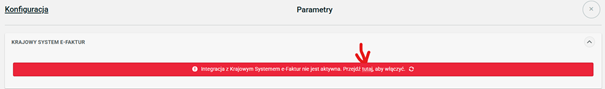 Krajowym Systemem e-Faktur nie jest aktywna. Przejdź tutaj aby włączyć.”