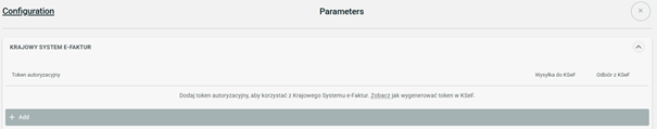 Przy Krajowym Systemie E-Faktur klikamy "+ Dodaj"