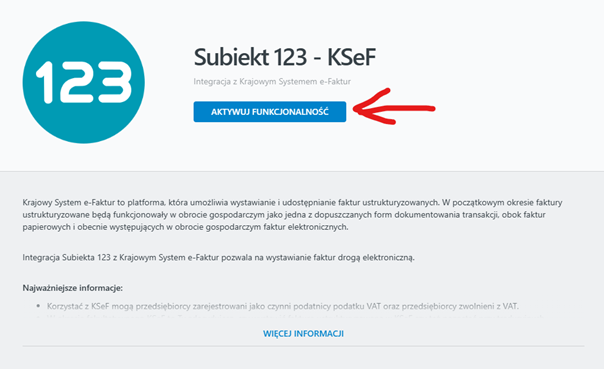 Po akceptacji klikamy „Aktywuj Funkcjonalność”