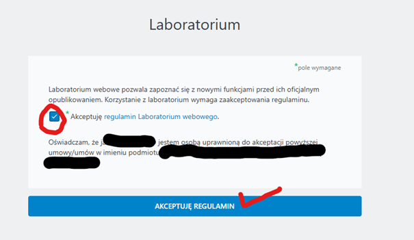 Należy zaakceptować regulamin Laboratorium Inserta.